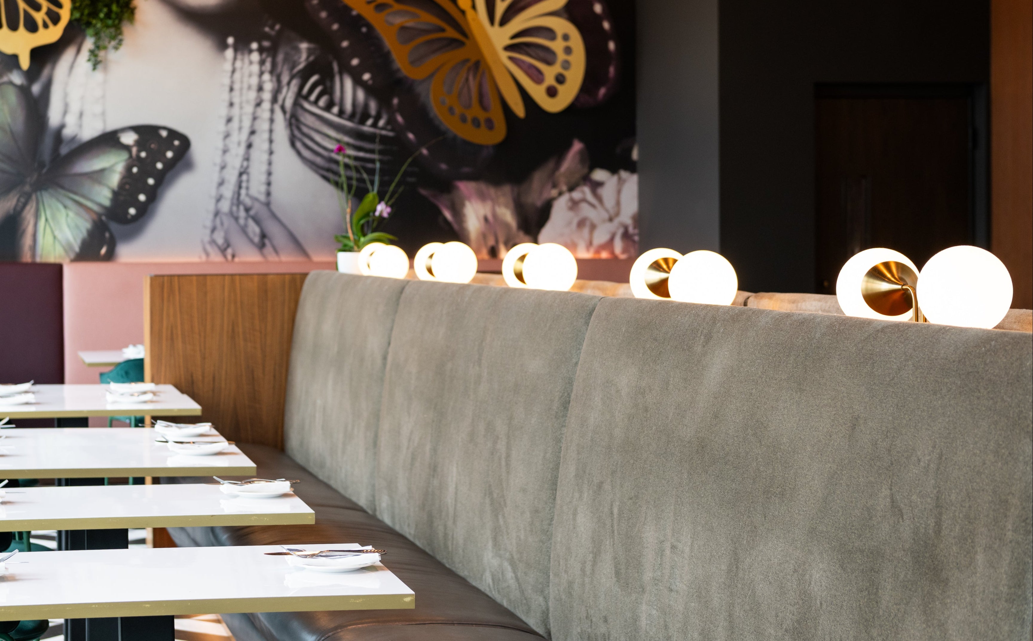 We deliver precise execution of your vision with fully customized restaurant booths. Never mass produced Choose the shape, size, fabric, texture that fits your space & your style for the experience you want for your guests.